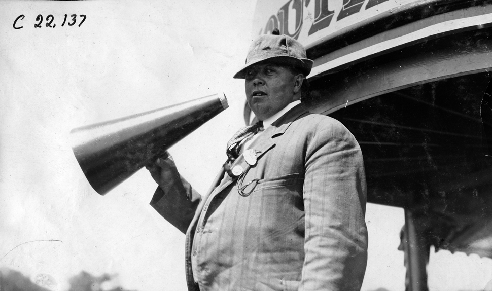 Smithson with megaphone on board "Plymouth," at 1909 Glidden Tour