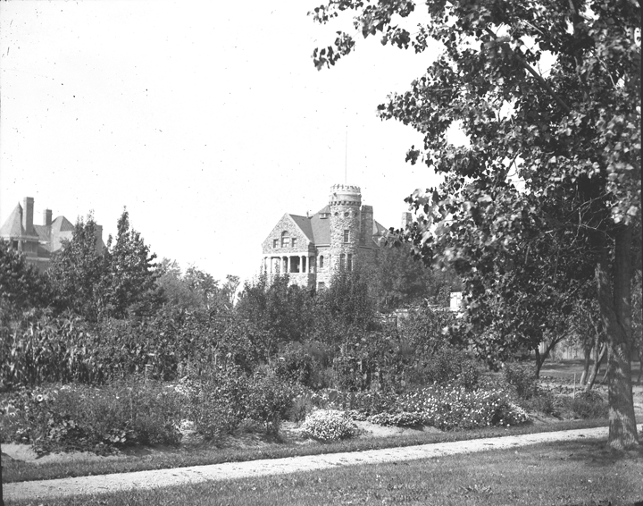 Large stone house in the Richardsonian style on Jefferson Ave., river visible; home of Julius Stroh. Recorded in glass negative ledger: "D/Historic houses-Stroh, Julius."