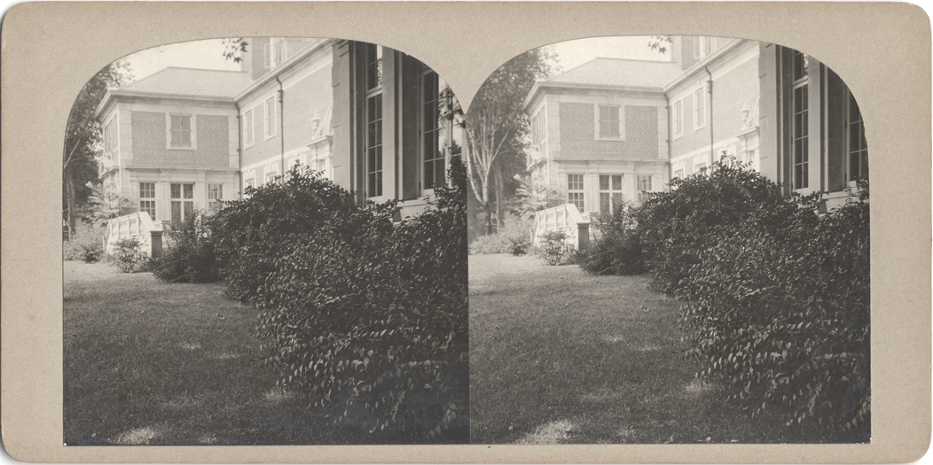 Gray mount. Dome topped. View of shrubs along one side of the Newberry estate.