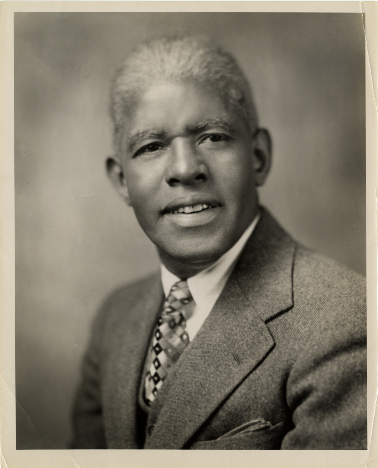 Portrait of tenor Roland Hayes. Stamped on back: "Better photographs, the Scurlock Studio, 900 You St., Washington, D.C., phone North 1364." Handwritten on back: "Roland Hayes, tenor."