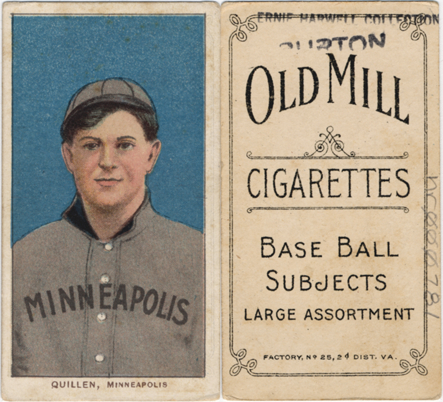 Portrait of baseball player Lee Quillen. White Borders (T206) series. Printed on front: "Quillen, Minneapolis." Printed on back: "Old Mill cigarettes. Base ball subjects, large assortment. Factory no. 25, 2d. dist. Va."