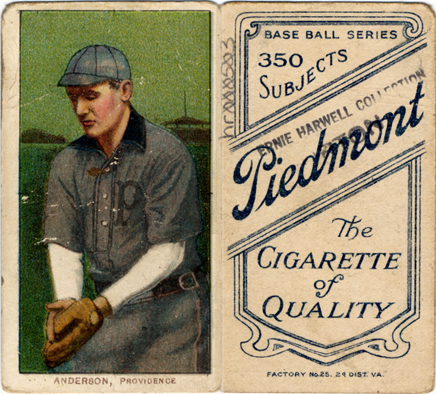 Portrait of baseball player John Anderson. White Borders (T206) series. Printed on front: "Anderson, Providence." Printed on back: "Piedmont, the cigarette of quality. Base ball series, 350 subjects. Factory no. 25, 2d. dist. Va."