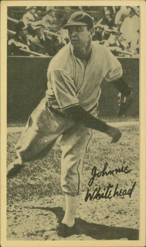 Portrait of baseball player John Whitehead. Wide Pens Premium (R314C) series. Printed on front: "Johnnie Whitehead."