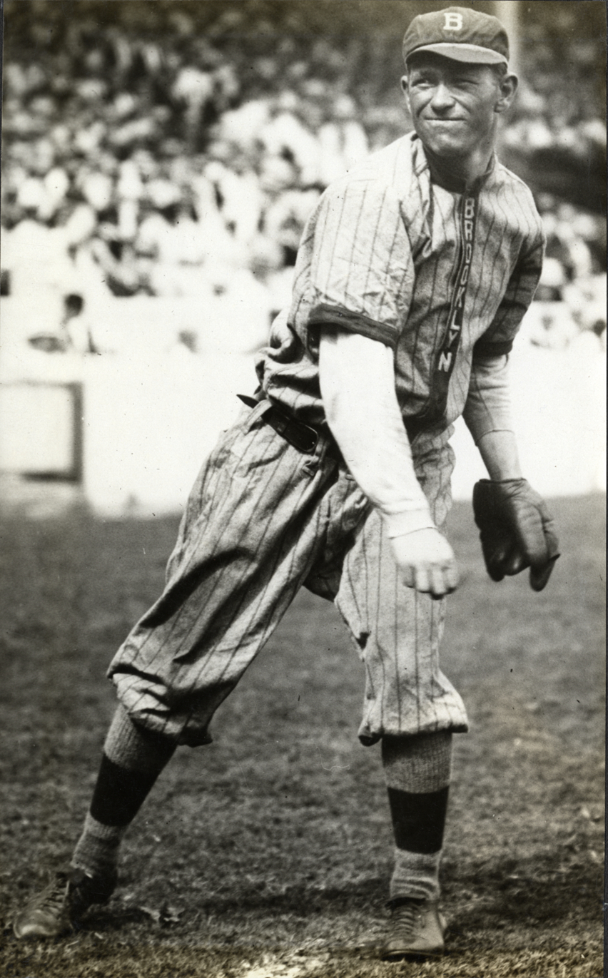 Portrait of baseball player Jimmy Johnston wearing Brooklyn uniform. Typed on label: "Jerry [sic] Johnston, 1917." Dates on label reflect affiliation with Brooklyn club.