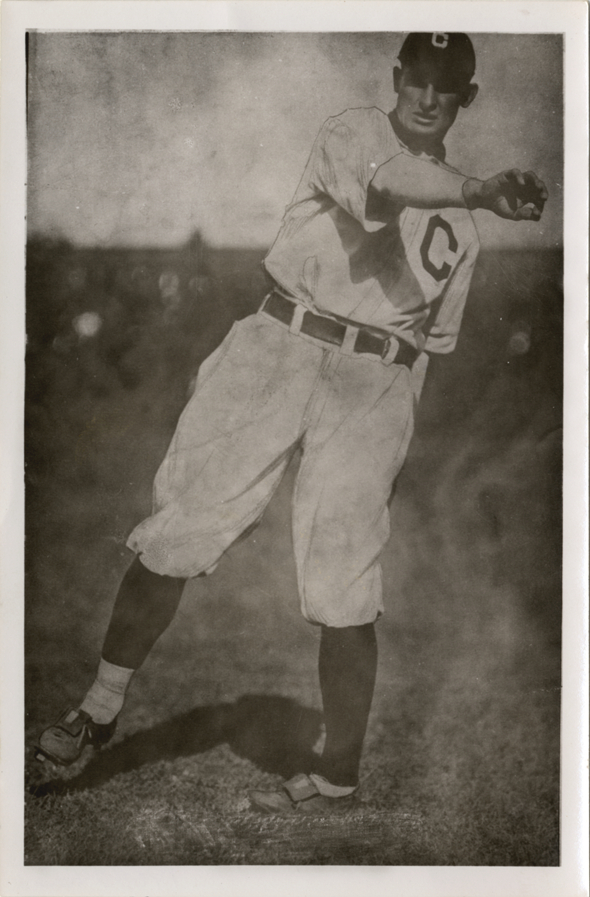 Cleveland Naps pitcher Fred Blanding on field pitching.