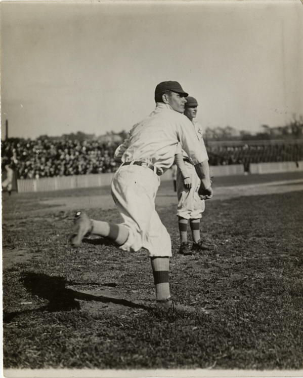 Russ Ford, Jersey City pitcher, batting on field. Handwritten on back: "Ford (Jersey City)."