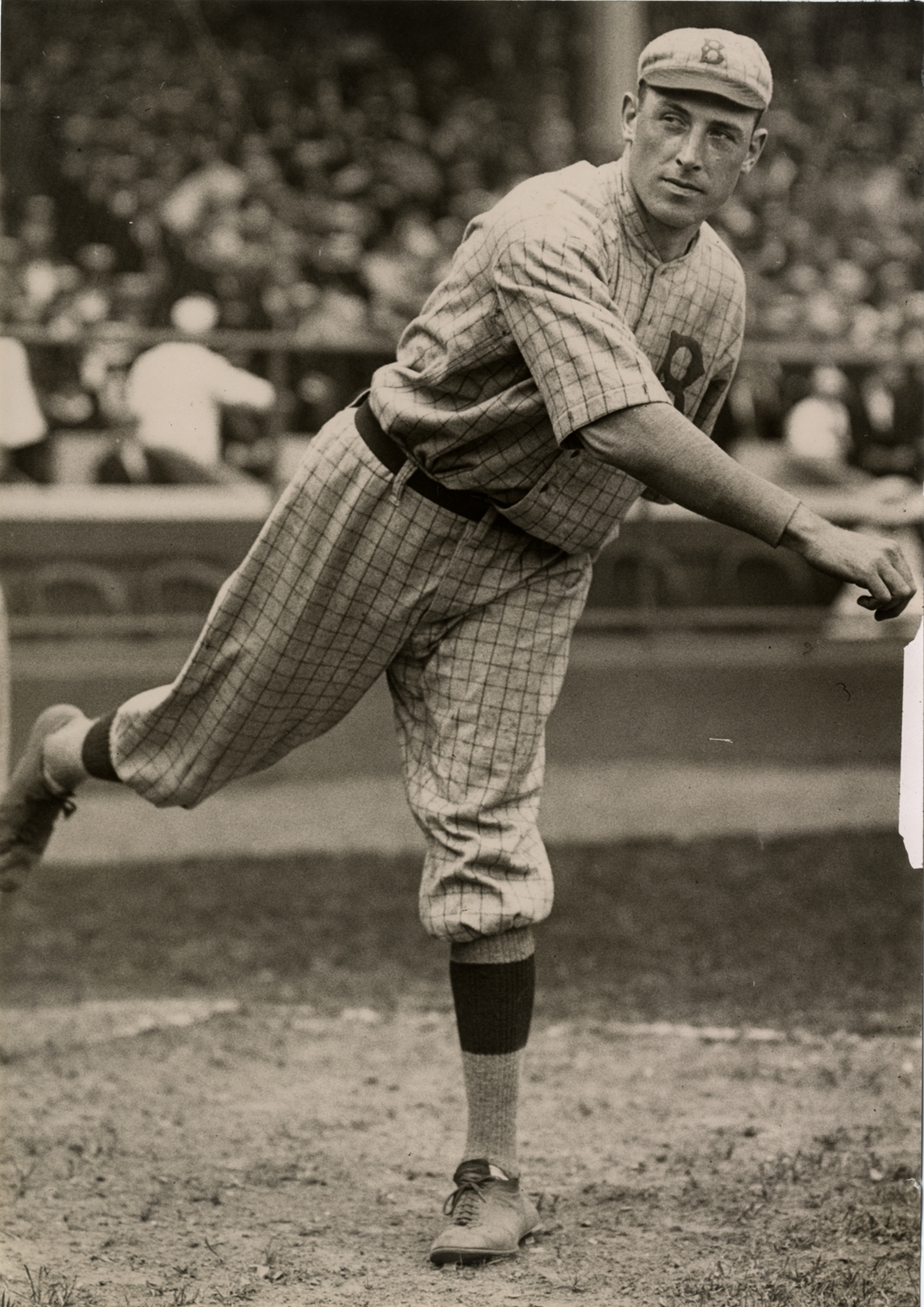 Brooklyn Robins pitcher Jeff Pfeffer pitching on field. Handwritten on back: "Ed Pfeffer (Brooklyn). 1913 [sic]."