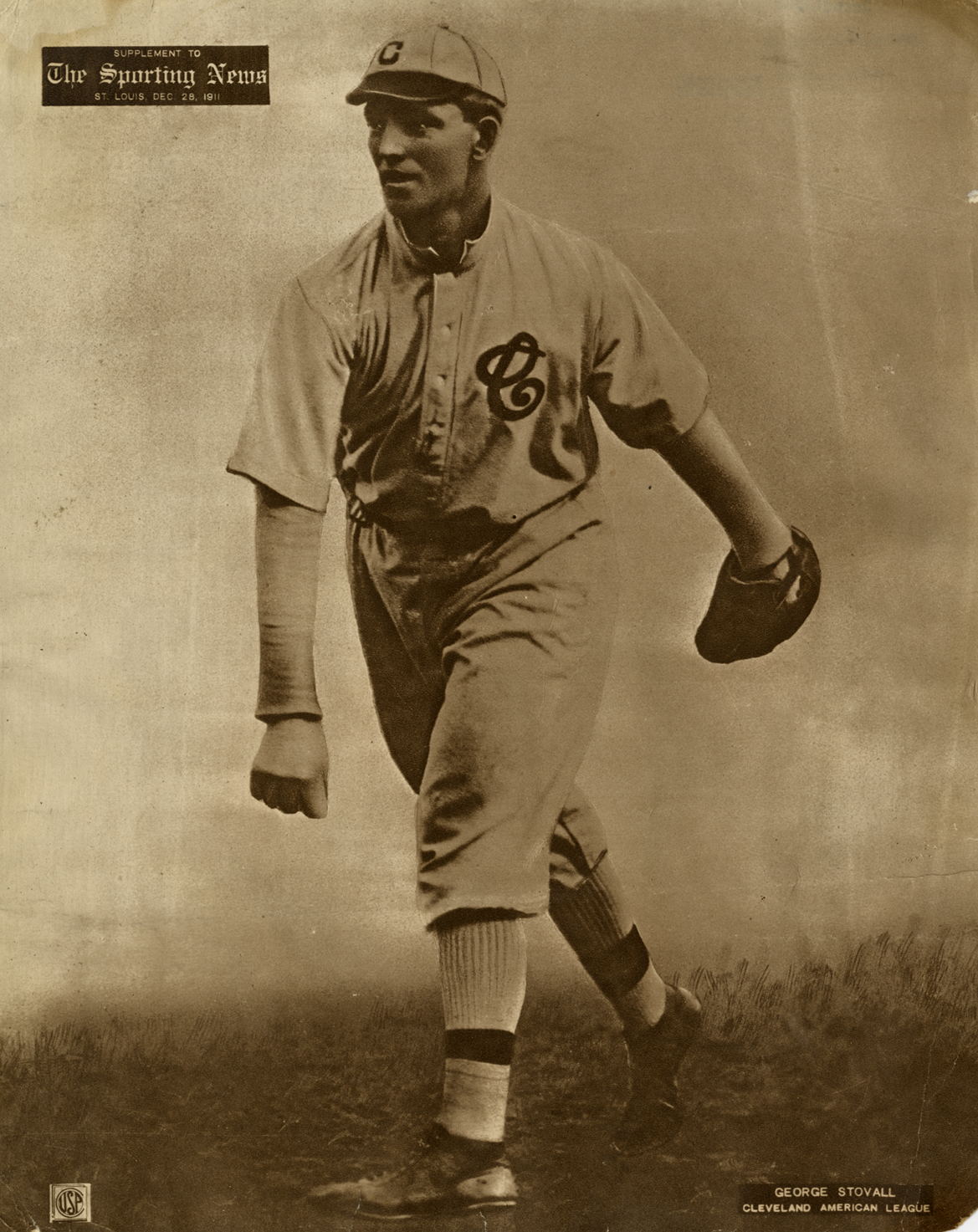 Portrait of George Stovall, baseball player for the Cleveland Naps. Printed on front: "George Stovall, Cleveland American League. Supplement to the Sporting News, St. Louis, Dec. 28, 1911."