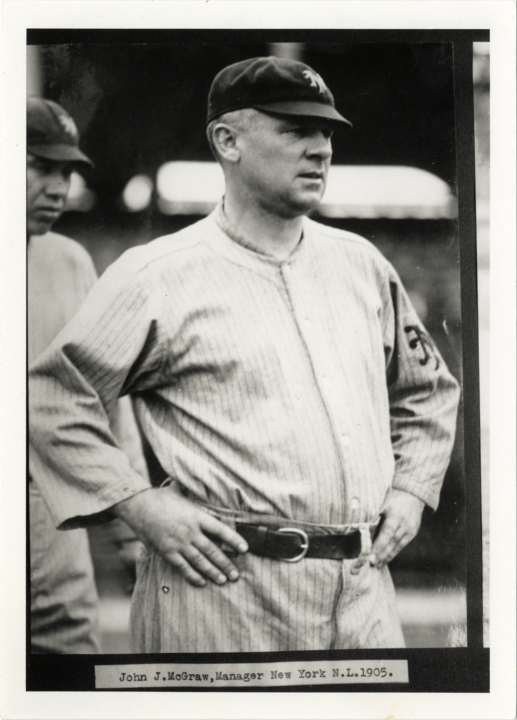 New York Giants manager John McGraw. Printed on front: "John J. McGraw, manager New York N.L. 1905."