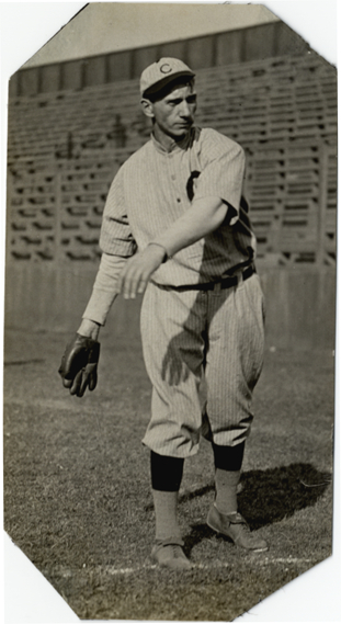 Chicago Cubs pitcher Jack Pfiester throwing on field. Stamped on back: "Charles M. Conlon, 216 W. 111th St., New York." Handwritten on back: "Pfiester (Cubs)."