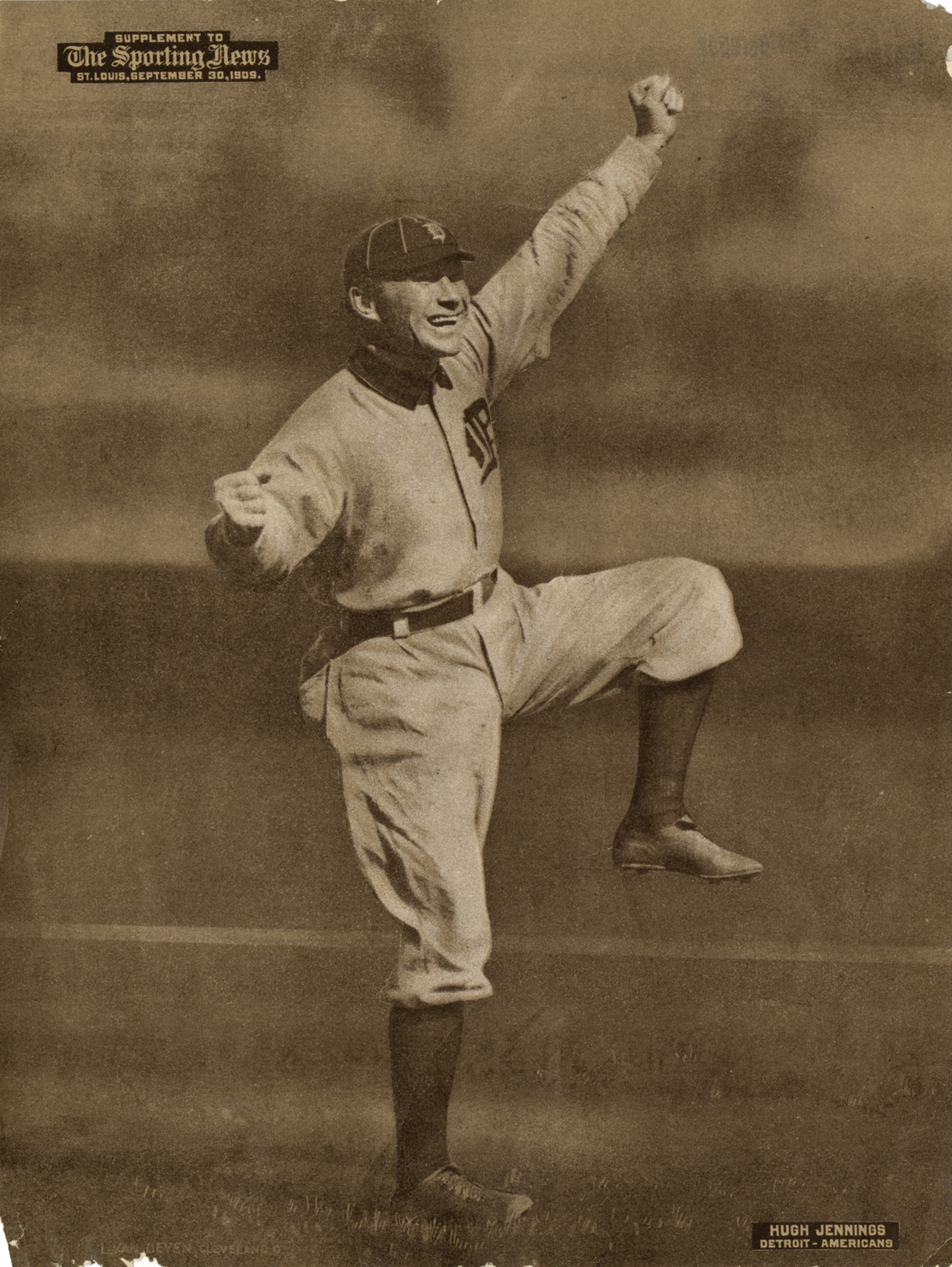 Portrait of Hughie Jennings, baseball player and manager for the Detroit Tigers. Printed on front: "Hugh Jennings, Detroit Americans. Supplement to the Sporting News, St. Louis, September 30, 1909."