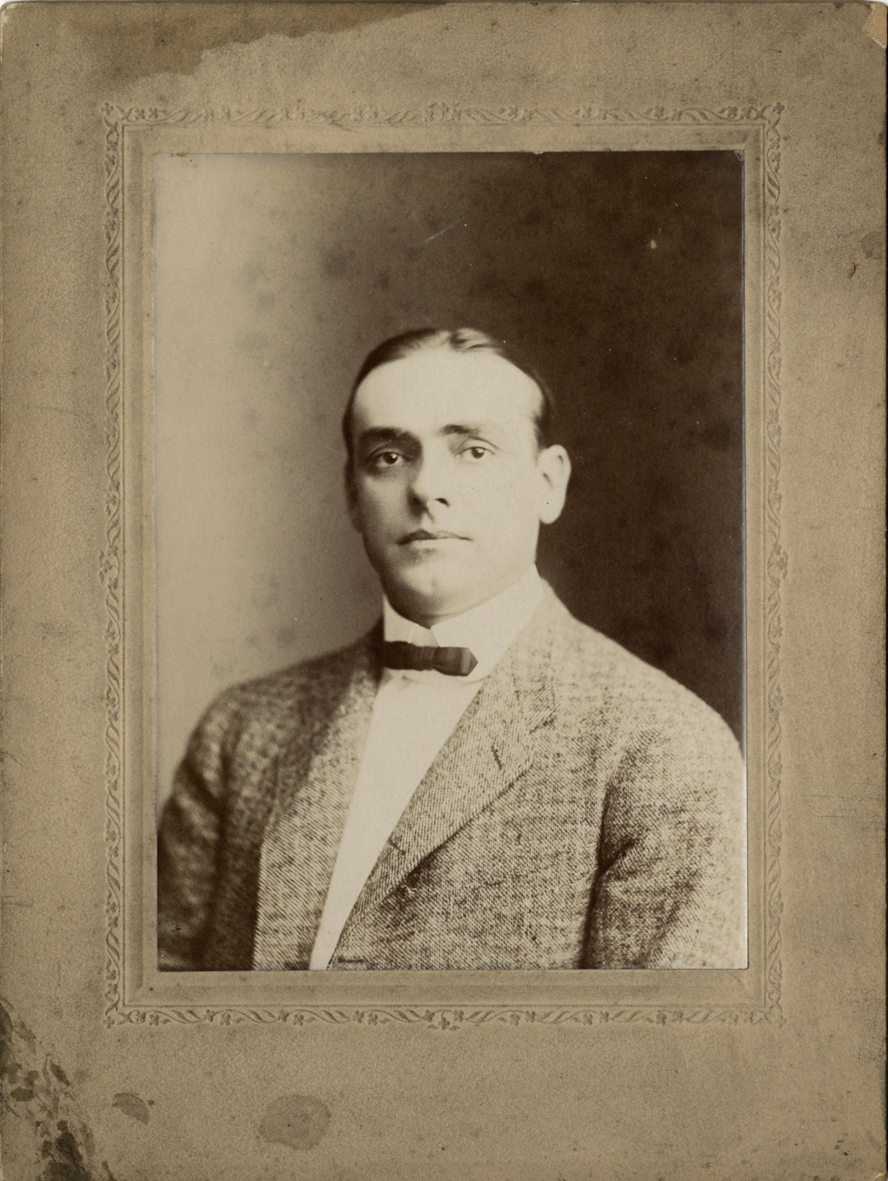 Portrait of baseball player-manager George Stallings, wearing suit and tie. Handwritten on back: "Geo. T. Stallings, manager."