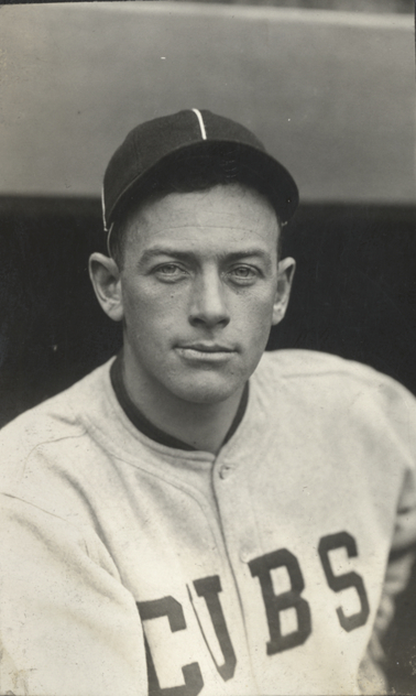 Portrait of baseball player Jigger Statz, wearing a Chicago Cubs uniform. Typed on label: "Arnold J. Statz, 1927-28." Dates on label reflect affiliation with Brooklyn club.
