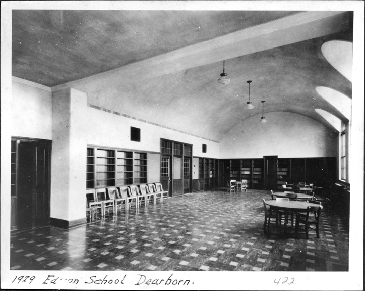 Interior view of Thomas A. Edison School room. Written on front: "1929 Edison School, Dearborn, 422."