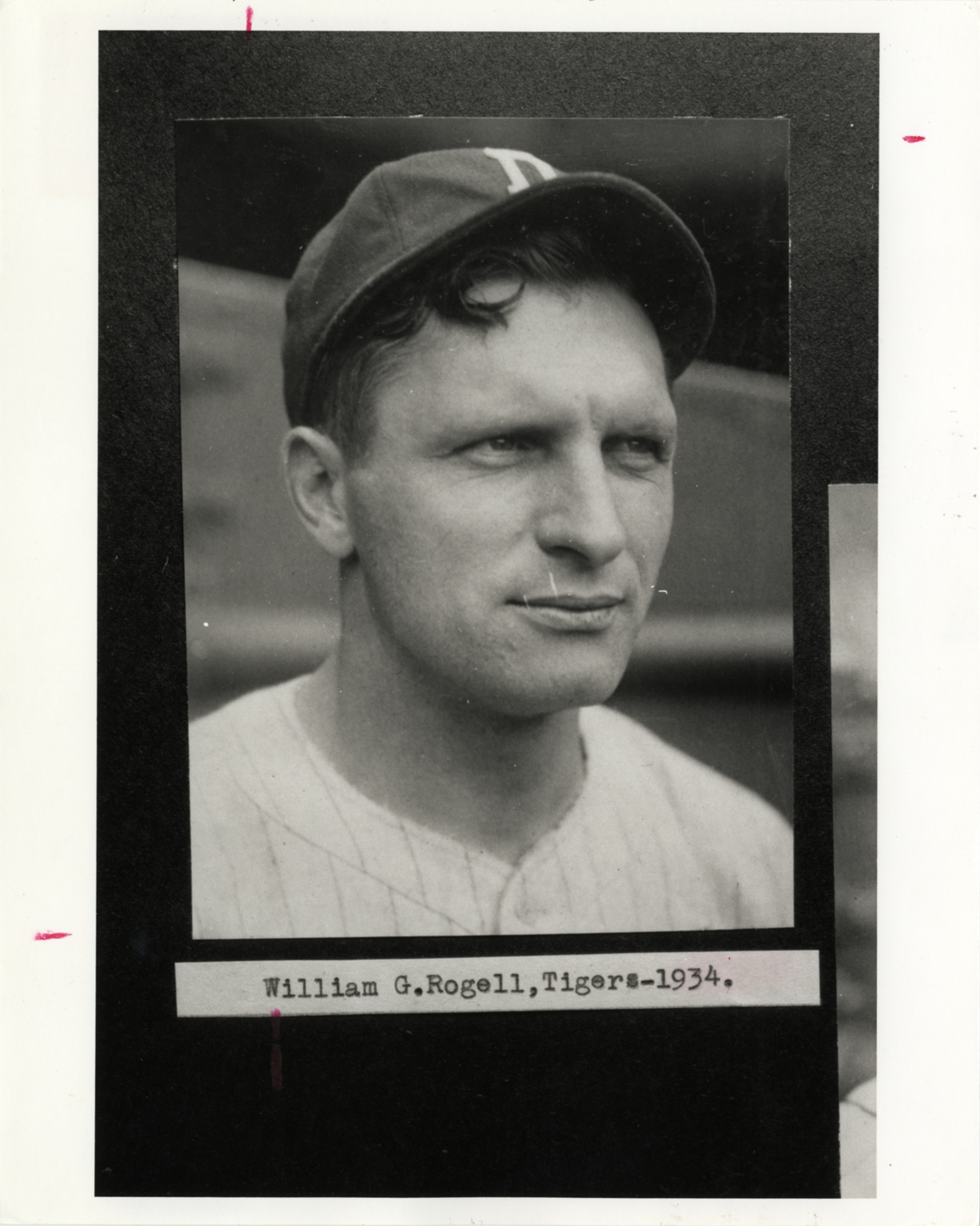 Portrait of Detroit Tigers shortstop Billy Rogell. Printed on front: "William G. Rogell, Tigers-1934 [sic]."