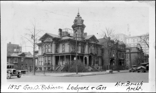 Exterior view of the home of George O. Robinson, built in 1875. Written on photo front: "1875, Geo. O. Robinson, Ledyard & Cass, H.T. Brush archt."