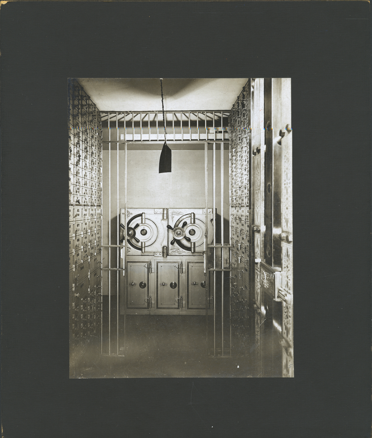 Interior of the Jackson State Savings Bank showing inside of vault. Written on photo back: "Jackson State Savings Bank-Jackson-Mich."
