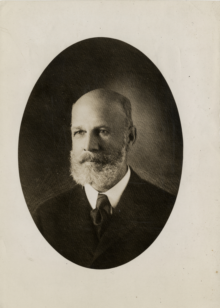 Portrait of George Pope. Typed on back: "Show Committee, Automobile Board of Trade, Col. Geo[rge Pope, C]hairman." Handwritten on back: "Biography--Pope, George."