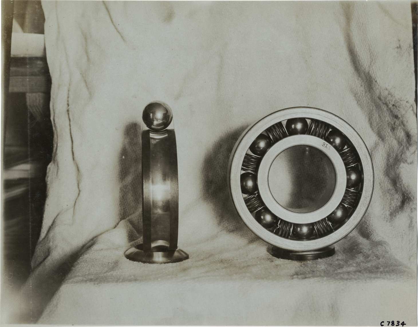 View of bearings for car. Handwritten on back: "Bearings, 1905."