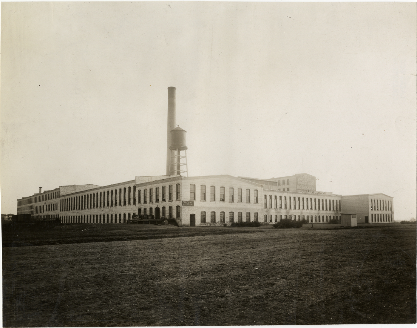 View of Lee Paper Company factory; water tower and smokestack visible on roof. Handwritten on back: "Companies--Lee Paper Co., Vicksburg, Mi., 1911."
