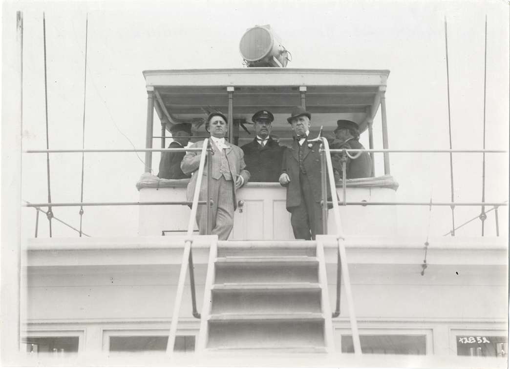 Senator William Alden Smith and unidentified man on ferry, Detroit Board of Commerce, Eighth Annual Cruise