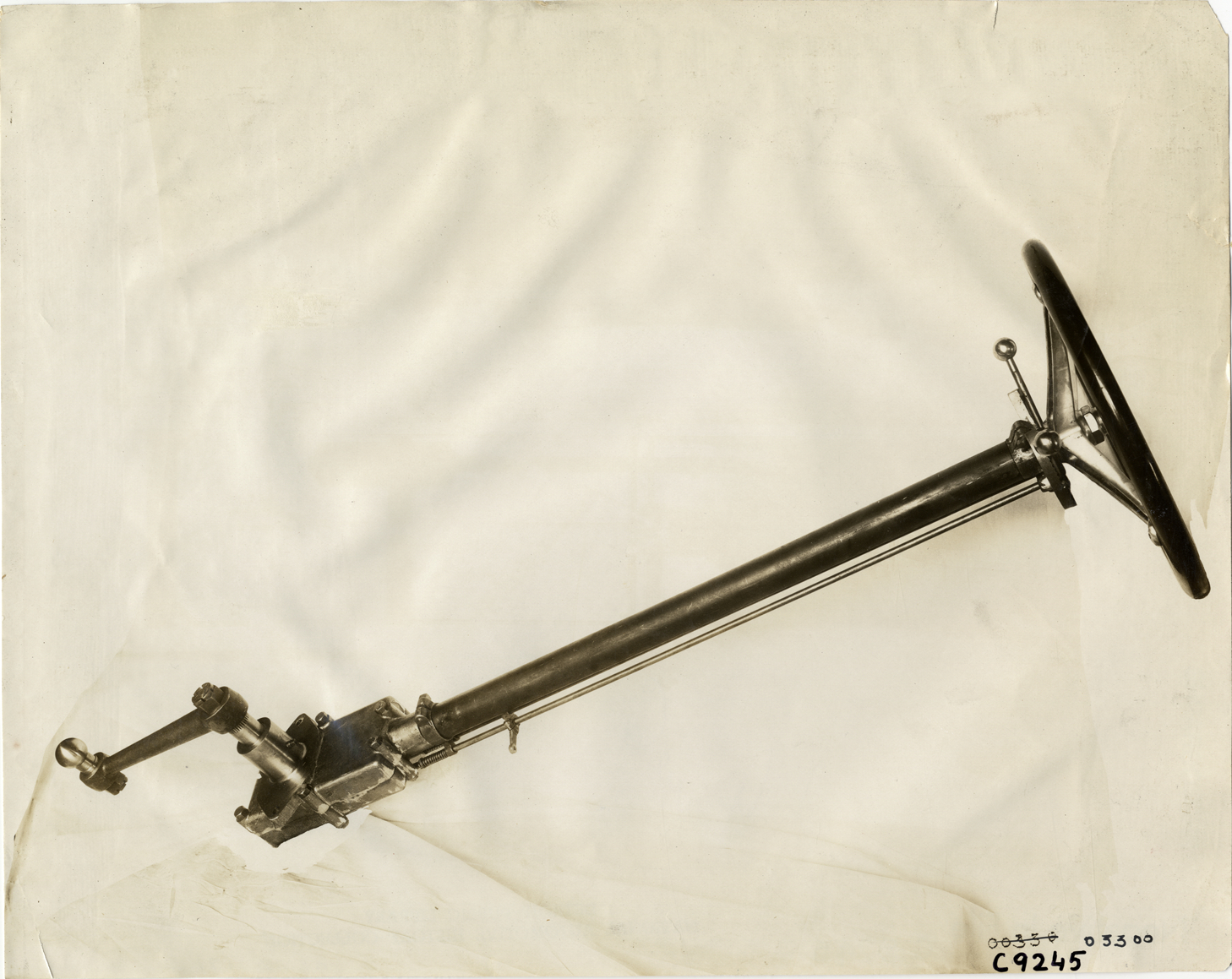 View of steering column manufactured by Lavigne Gear Company. Handwritten on back: "Factories--Lavigne Gear Co., 1911."