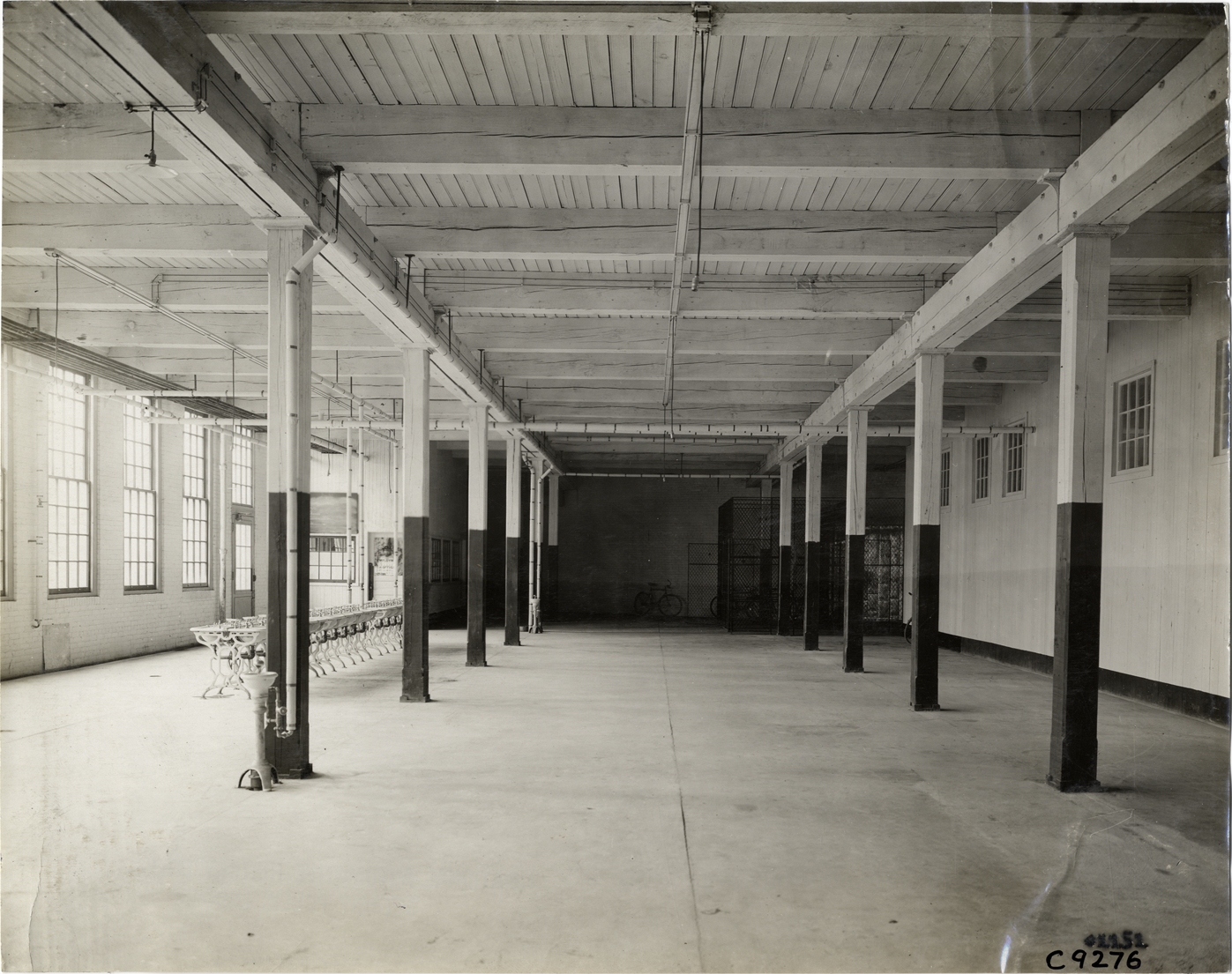 View of interior of Marquette Motor Company factory. Stamped on back: "Spooner & Wells, Inc., photographers, 1231 Woodward Ave., Detroit, Mich., telephone North 1745." Handwritten on back: "Factories--Marquette Motor Co., 1911. Saginaw, Mich."