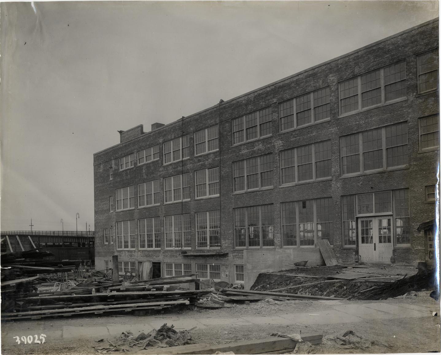 Side view of Ford Motor Company distributing plant and service depot building during construction. Stamped on back: "Spooner & Wells, Inc., photographers, telephones 3472-3473 Columbus, 1931 Broadway, New York." Handwritten on back: "Factories--Ford Motor Co., 1911."