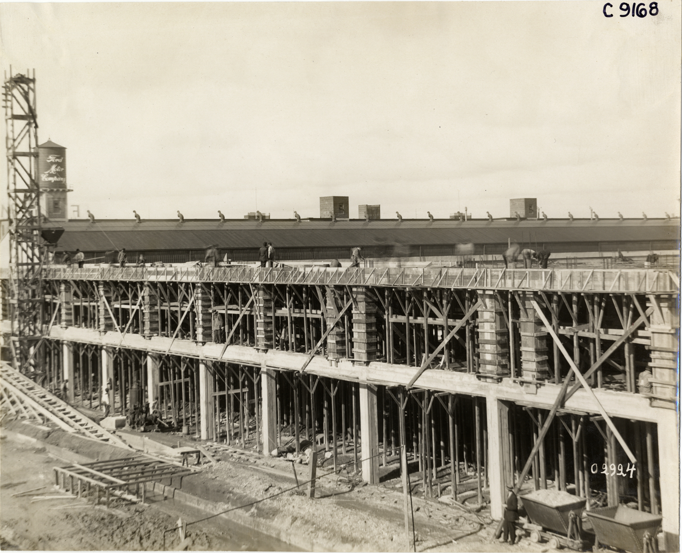 View of Ford Motor Company factory addition during construction. Handwritten on back: "Factories--Ford Motor Co., 1911."