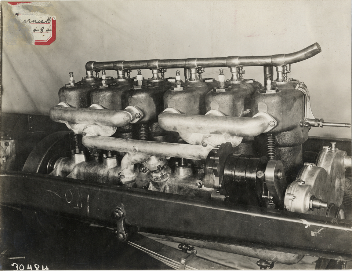 View of car engine. Stamped on back: "Photo by N. Lazarnick, 29 West 42nd Street, N.Y., tel. 594 Bryant." Handwritten on back: "Engines--Unidentified, 1907."