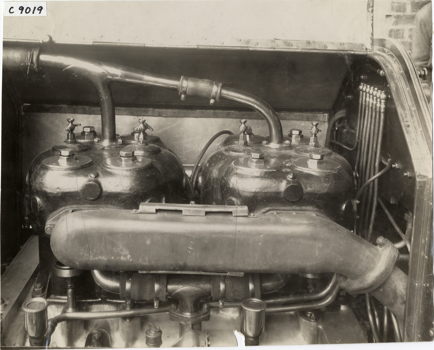 Close-up view of Isotta-Fraschini engine for car. Handwritten on back: "Engines--Isotta-Fraschini, 1909."