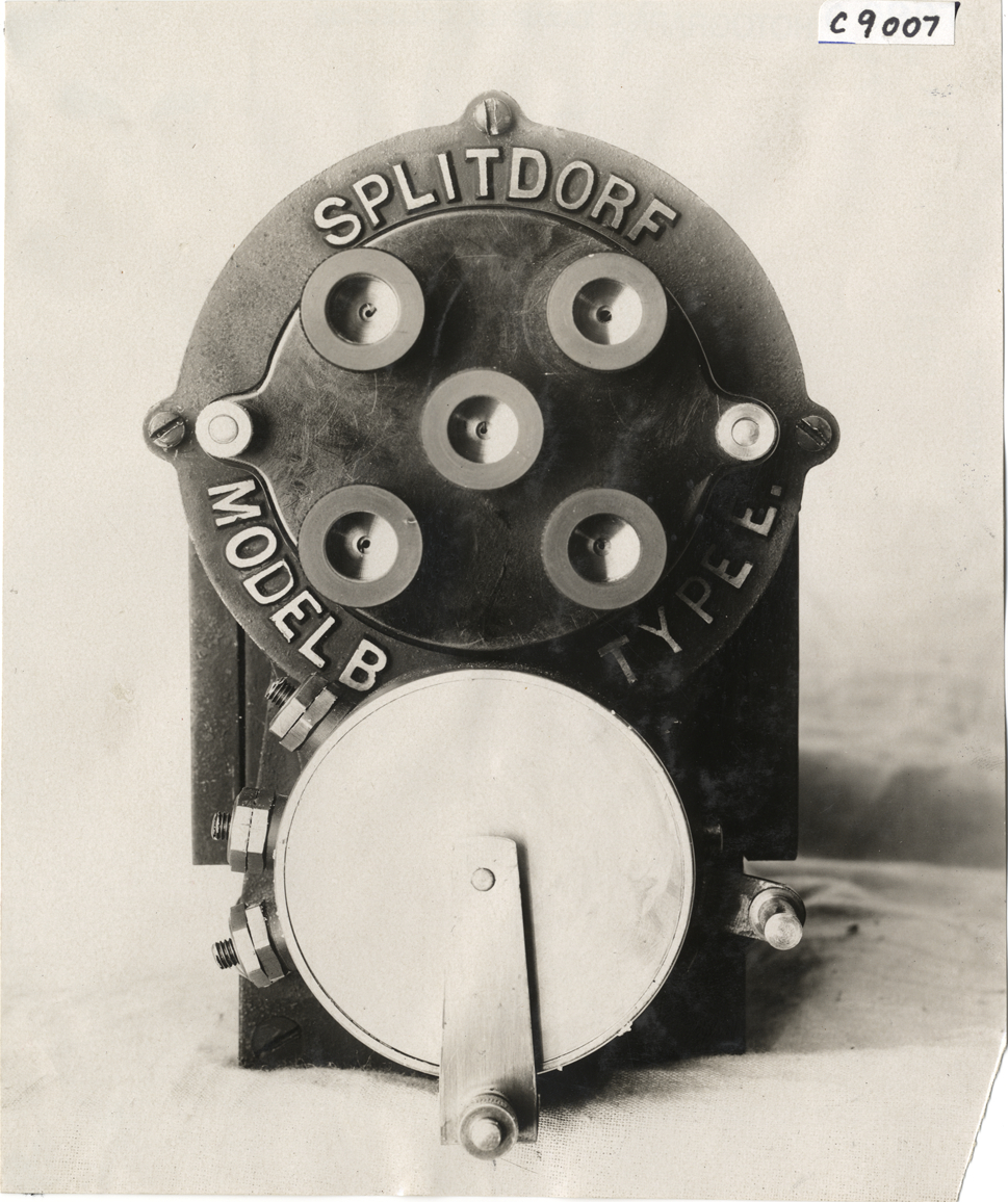 View of Splitdorf magneto for car. Handwritten on back: "Electrical--Splitdorf magneto, 1908."