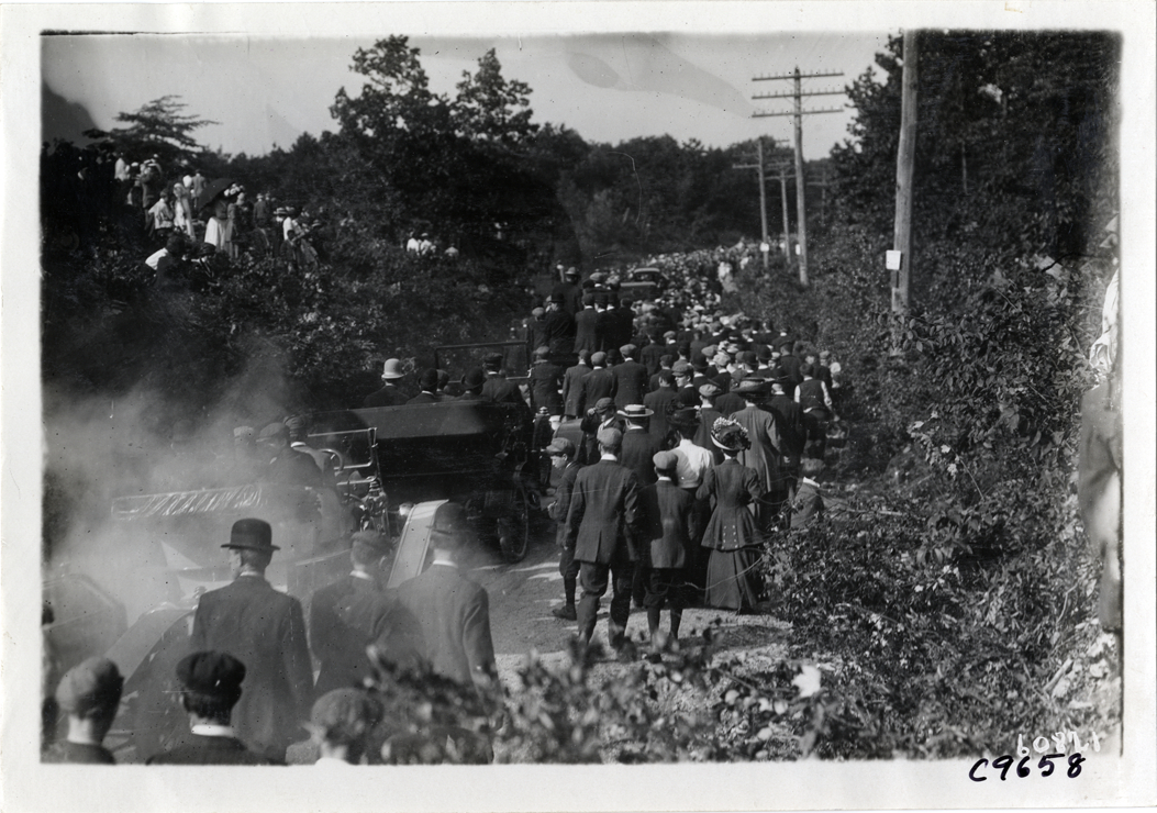 Spectators walking on road, 1910 Dead Horse Hill Climb