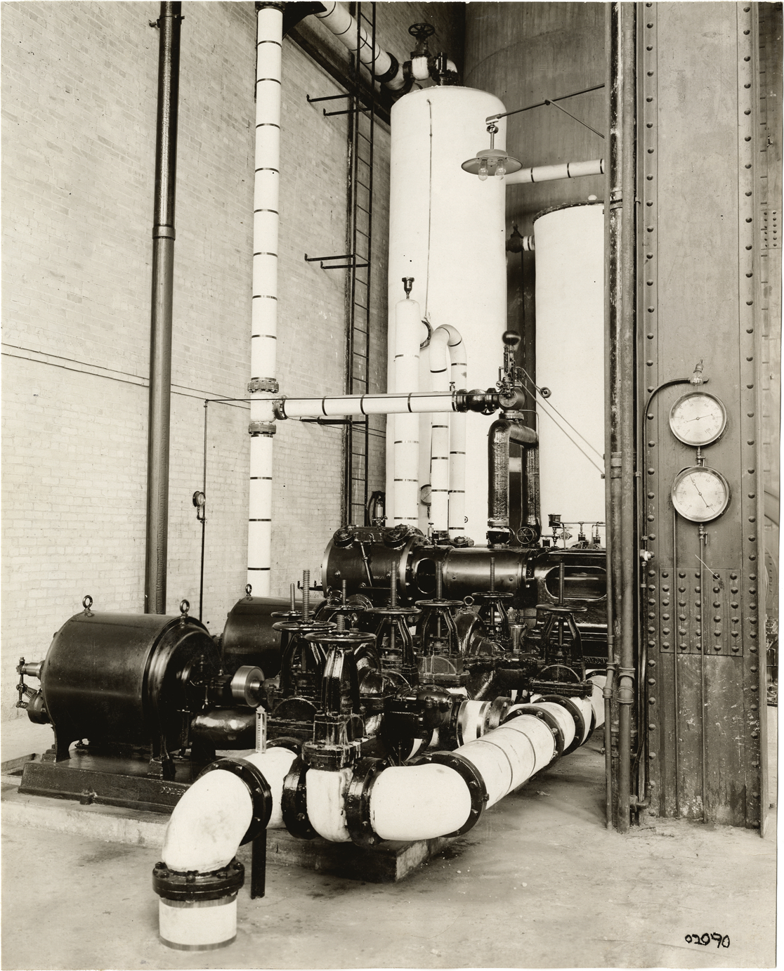 View of steam pipes, gauges and boiler equipment in Dodson & Larsen factory, Pontiac, Michigan. Handwritten on back: "Machinery, 1911. Taken for Dodsen [sic] & Larsen at Pontiac."