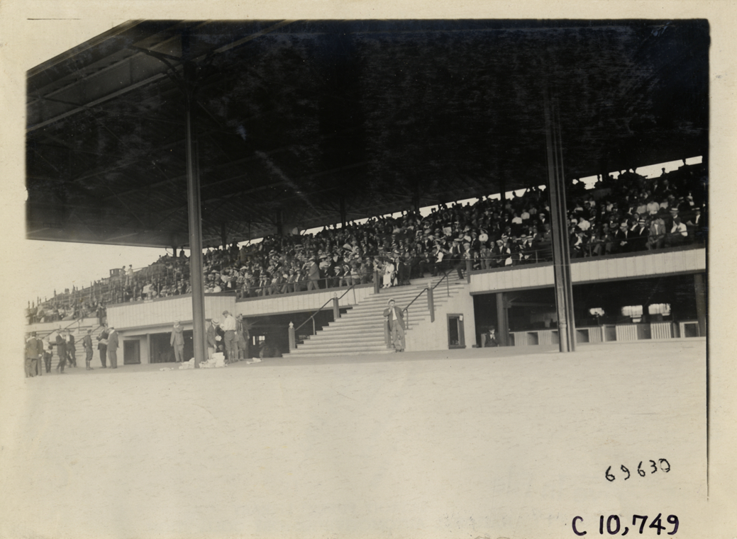 Spectators in grandstand, 1911 Federation of American Motorcyclists races, Fort Erie, Ontario