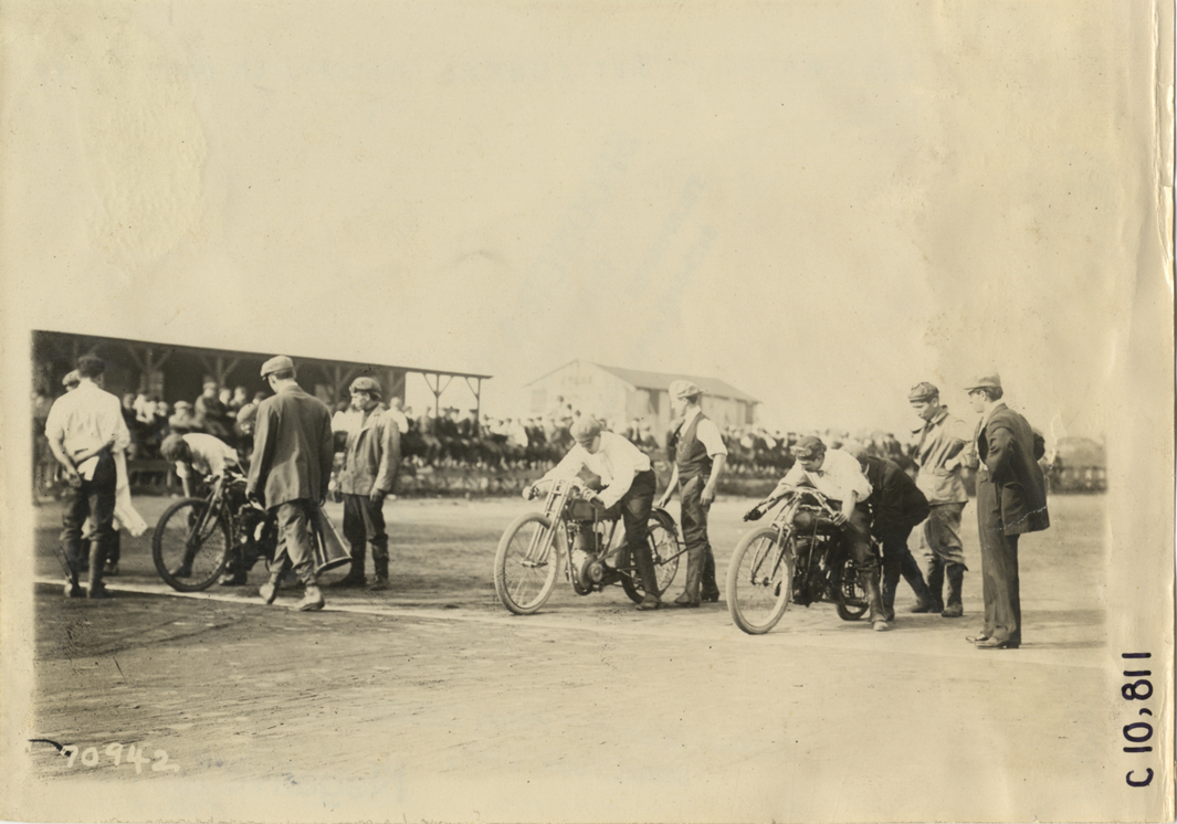 Start of motorcycle race, 1911 Guttenberg motorcycle races