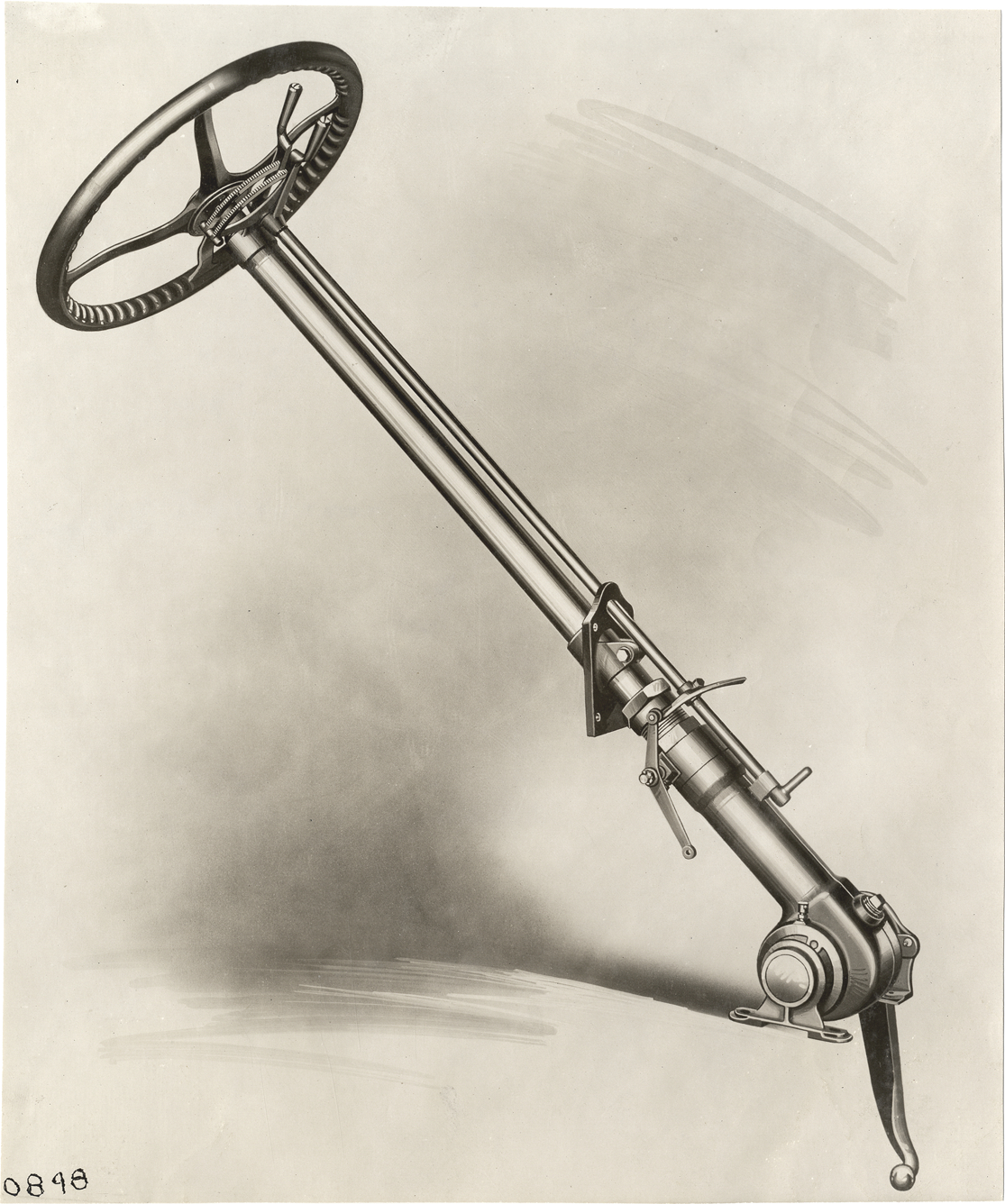 Artist's depiction of steering column for 1910 Owen car. Handwritten on back: "Owen, 1910. Mechanical components."