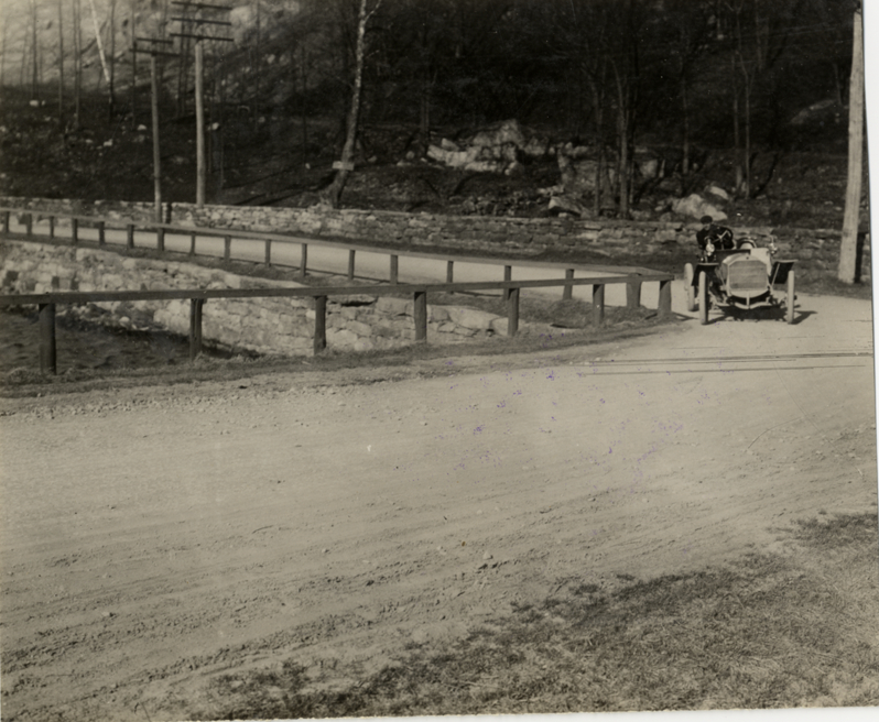 Motorist traveling on racecourse, 1908 Briarcliff Trophy Race