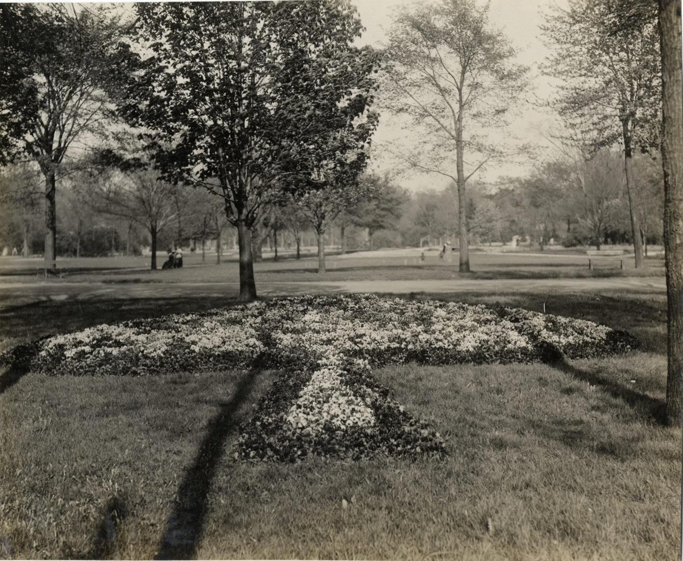 View of flower garden on Belle Isle. Handwritten on back: "Parks--Belle Isle, Detroit, Mich., 1910."