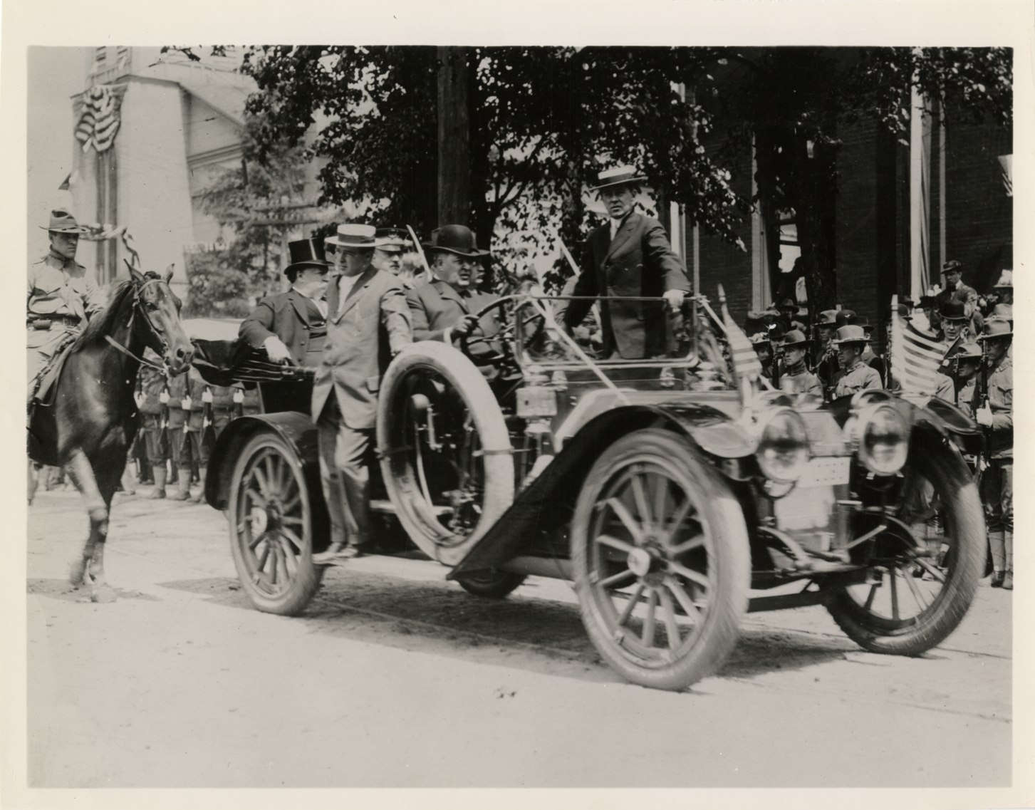 President William Howard Taft riding in Oldsmobile automobile, Custer memorial celebration