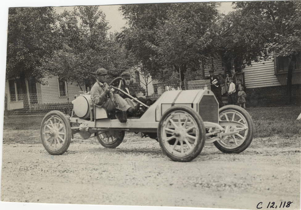 Joseph Matson and passenger in Chalmers-Detroit racecar, 1909 Crown Point races
