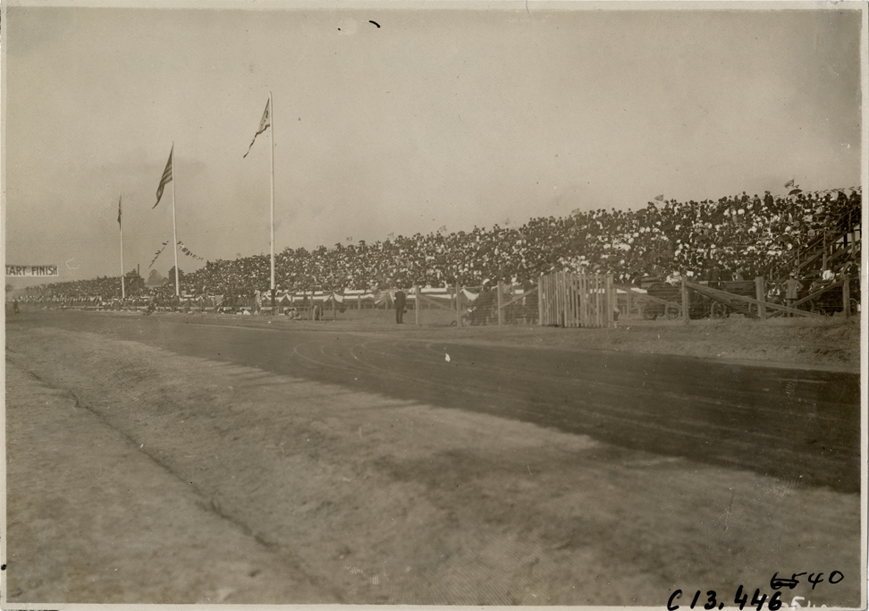 Spectators in stands, 1908 Grand Prize races