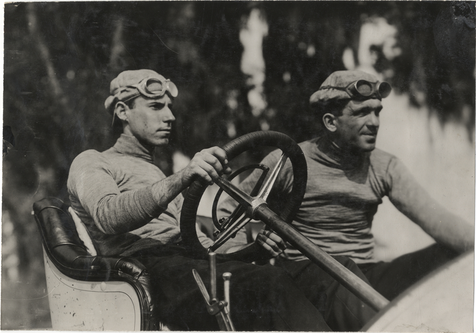 Len Zengle and Dick Williams in Pennsylvania racecar, 1908 Grand Prize races