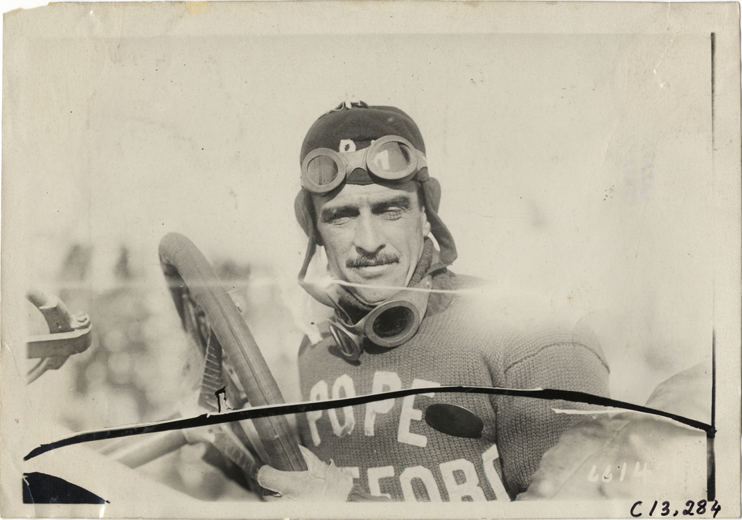 Louis Disbrow in Pope-Hartford racecar, 1910 Grand Prize races