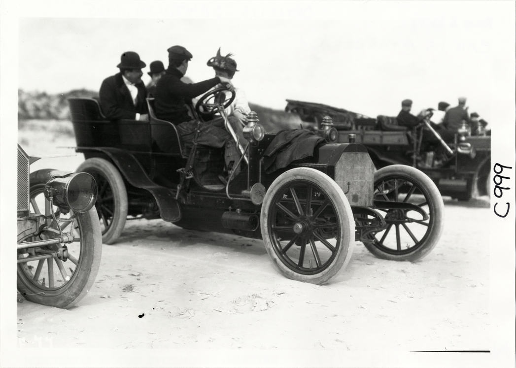 Motorists in Mercedes automobile, 1905 Ormond-Daytona races