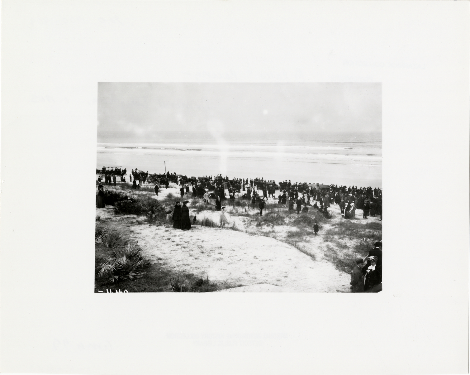 View of spectators on beach during the 1905 Ormond-Daytona races in Florida. Handwritten on back: "Races and racing--Ormond-Daytona (Misc. activities), 1905."
