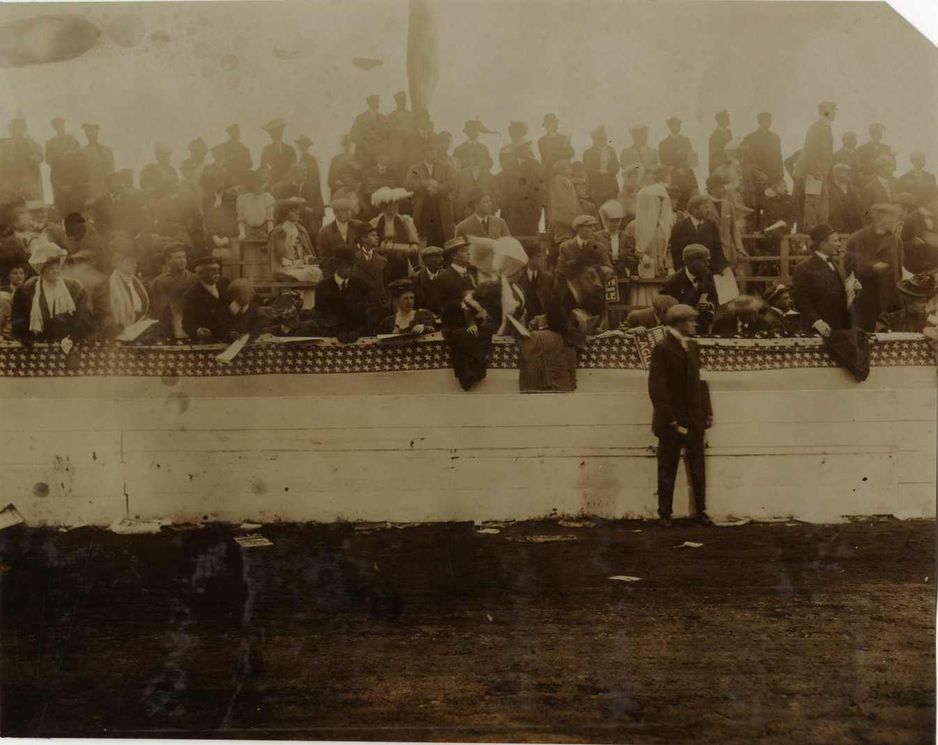 Spectators in grandstand, 1908 Vanderbilt Cup races