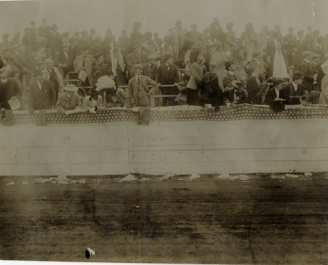 Spectators in grandstand, 1908 Vanderbilt Cup races