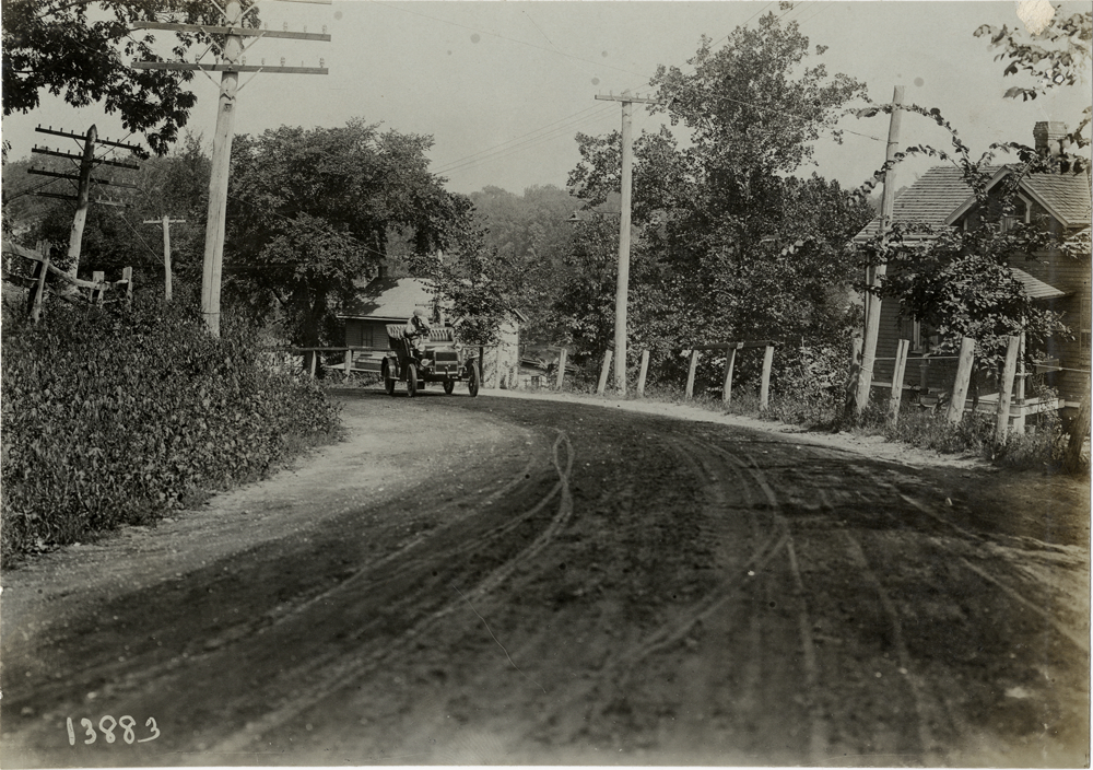 Motorist traveling on course, 1906 Vanderbilt Cup races