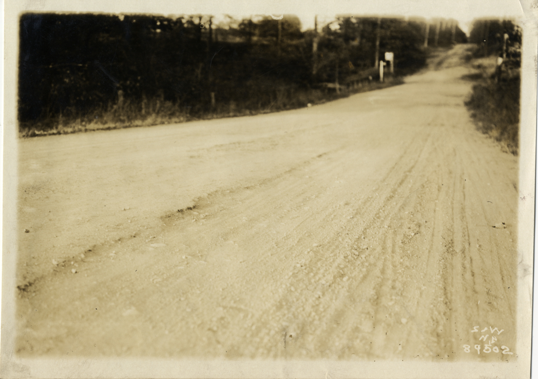 Close-up view of rural dirt road. Printed on front: "S & W, N.Y." Handwritten on back: "Roads, 1915."
